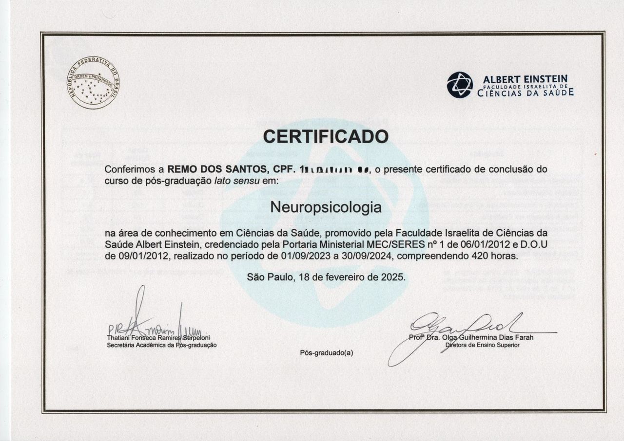 Tenho gostado muito do processo de avaliação neuropsicológica com o Remo, é um profissional competente e atencioso