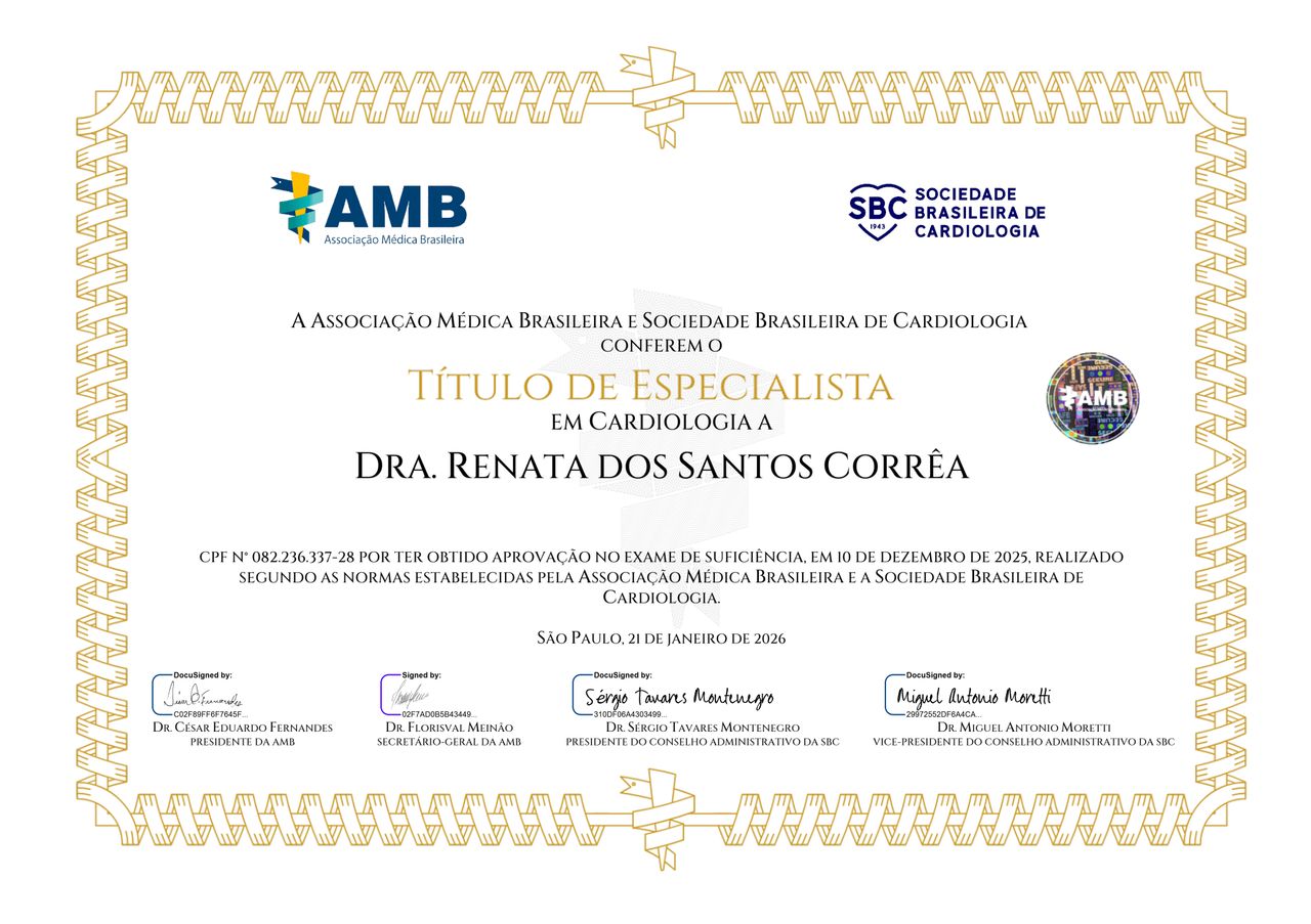 Dra Renata cuida da minha saúde há 20 anos, uma médica espetacular, atenciosa, se preocupa em cuidar da nossa saúde com amor e carinho. Tem muita experiência em sua especialidade. Gratidão por cuidar tão bem do.meu coração