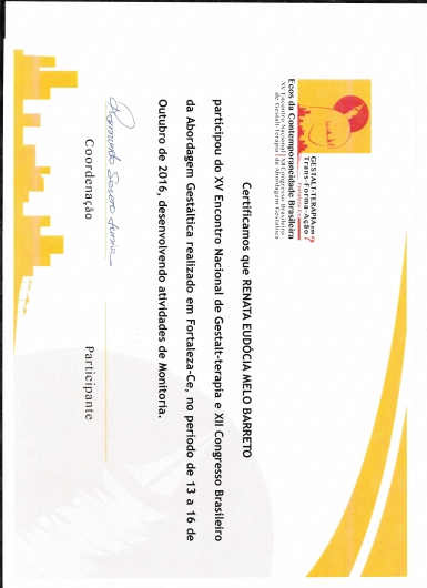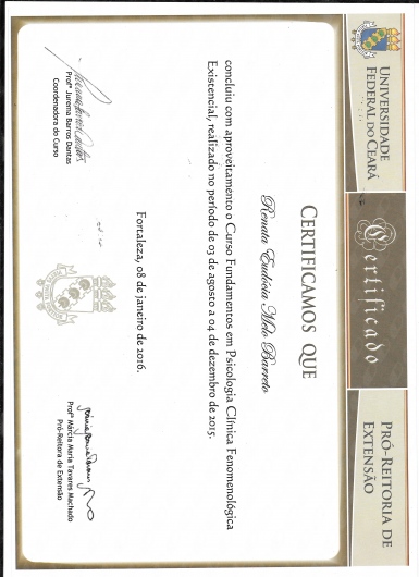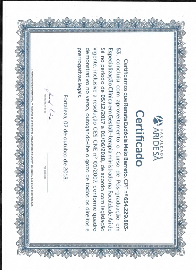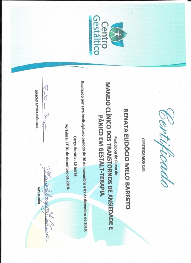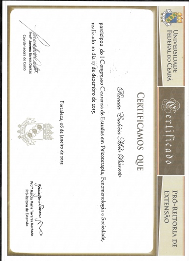 Psicóloga com especialização em Clínica de Gestalt-terapia pelo Instituto Gestalt do Ceará (IGC). Formada pela Universidade Federal do Ceará (UFC). Participou do Programa de Apoio à Vida (Pravida) vinculado ao Centro de Ciências da Saúde da UFC no ambulatório de psiquiatria do Hospital Walter Cantídio (HUWC), assim como membro do laboratório Lapfes (Laboratório de Estudos em Psicoterapia, Fenomenologia e Sociedade) da UFC.