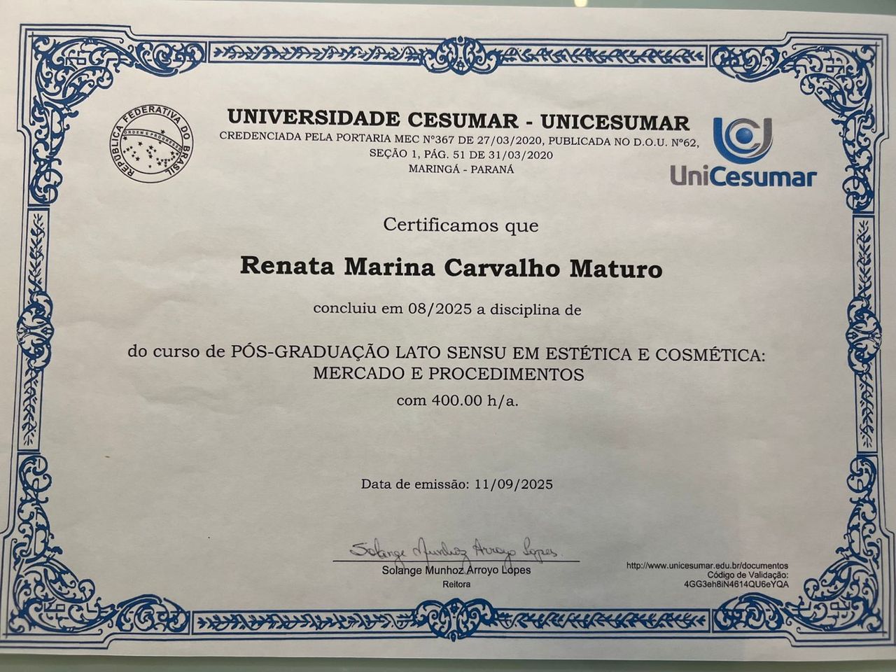 Número de registro: certificado apresentado