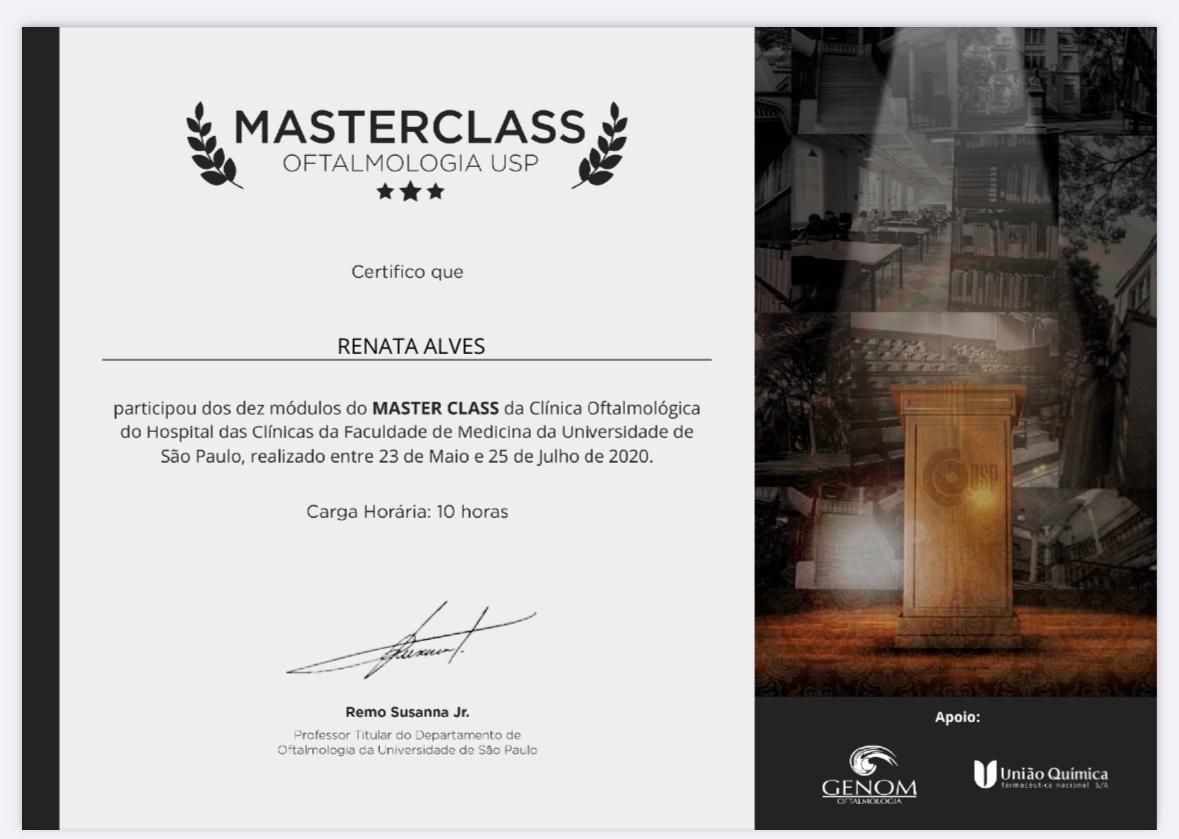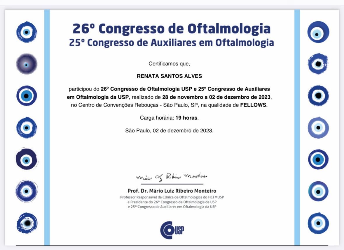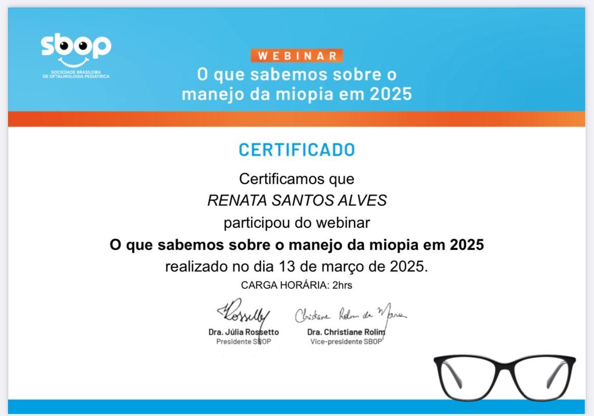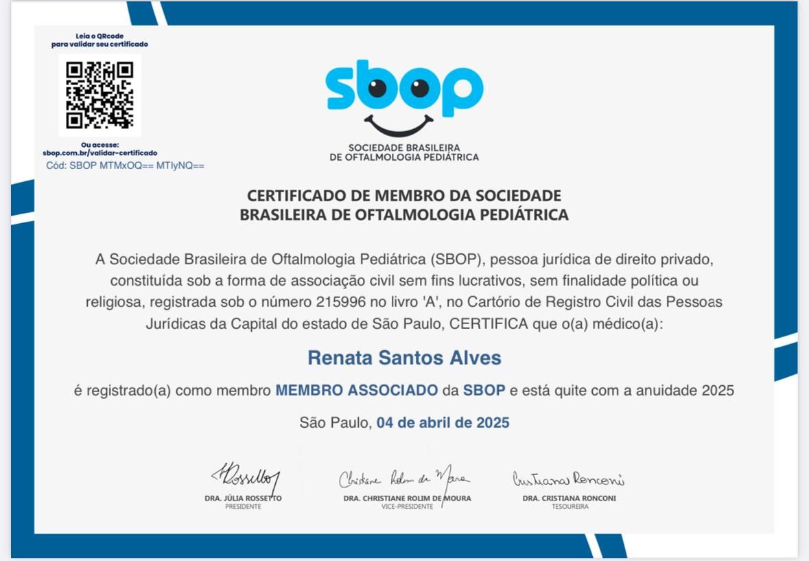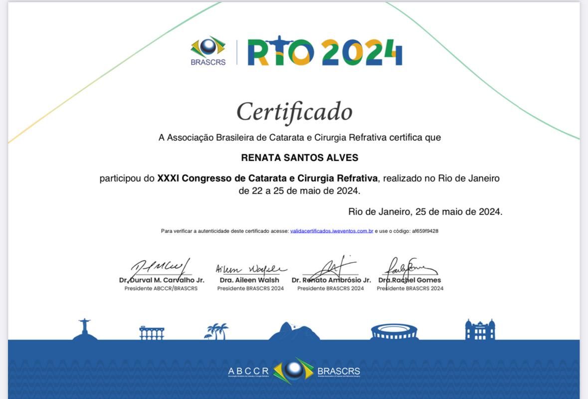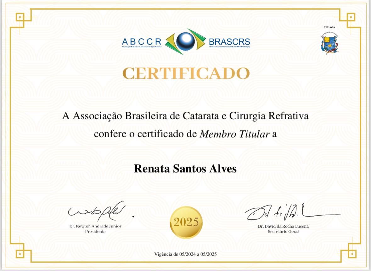 A Dra. Renata é uma médica excepcional. Realizei minha cirurgia refrativa PRK com ela e só tenho elogios a fazer. Desde a primeira consulta, demonstrou extremo profissionalismo, segurança e um conhecimento técnico impecável, o que me passou muita confiança para realizar o procedimento.