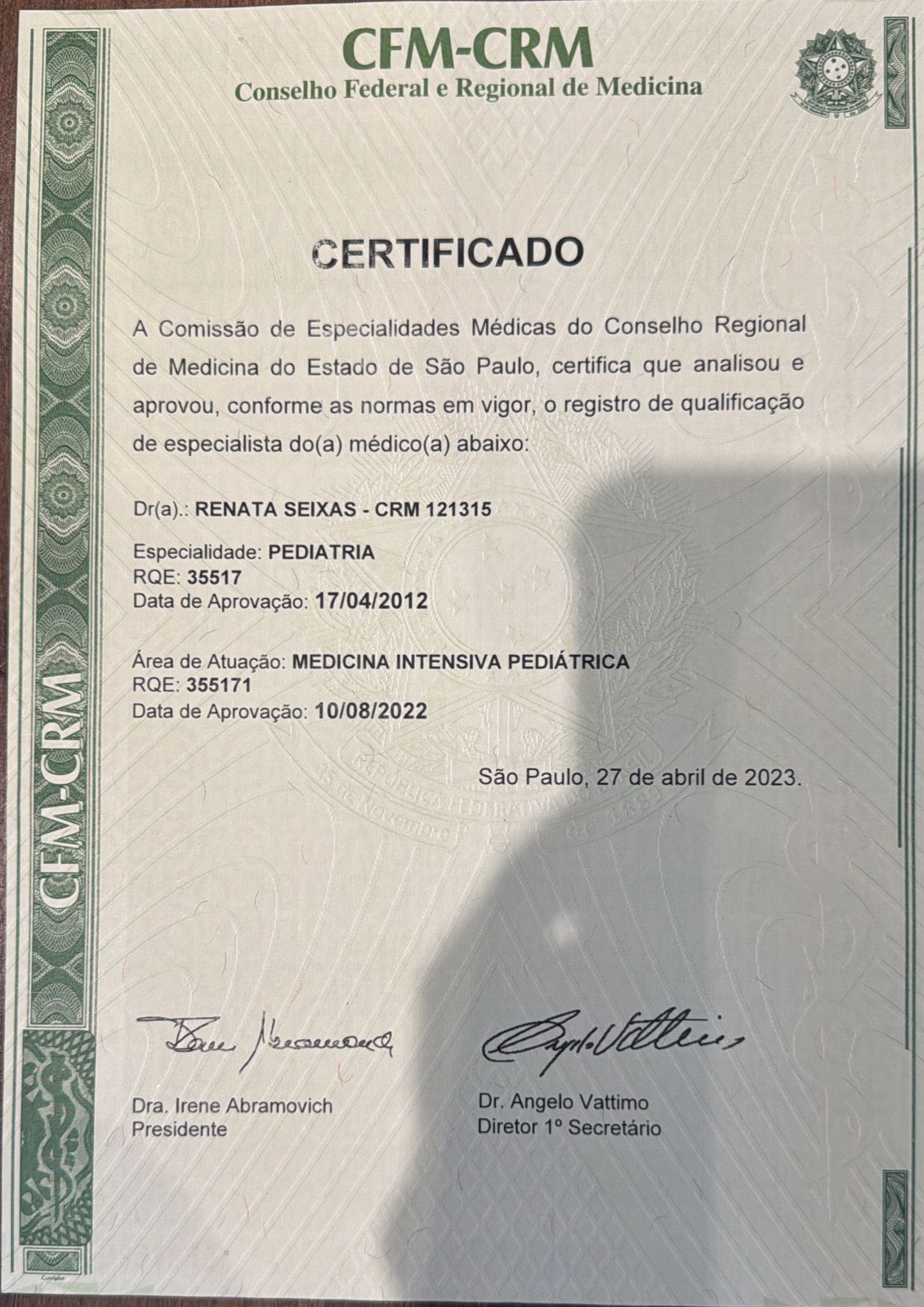 Número de registro: CRM SP 121315 - RQE Nº 35517 (Pediatria)