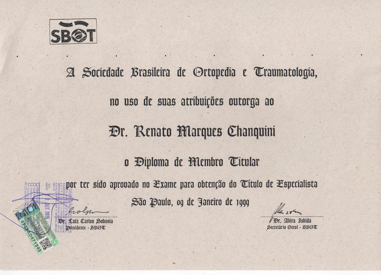 Quais são as principais especialidades de Renato Marques Chanquini?Renato Marques Chanquini é ortopedista - traumatologista. Te mostramos alguns dos serviços oferecidos pelo especialista graças à sua trajetória e vasta experiência: Primeira consulta ortopedia e traumatologia, Consulta ortopedia e traumatologia, Análise da densidade óssea na determinação da osteoporose , Biópsia de vertebra aberta, Cifoplastia, Cirurgia da sindrome compressiva em tunel osteofibroso do carpo, Infiltração de substâncias em cavidade sinovial (articulação), Artrocentese Escapuloumeral, Tratamento cirúrgico de fratura e luxação ou disjunção da pelve, Meniscectomia.