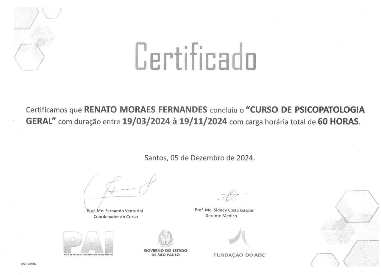 Você já passou por consulta com Renato Moraes Fernandes? Conte aqui como foi. Outros pacientes vão te agradecer por ajudá-los a escolher o melhor especialista.