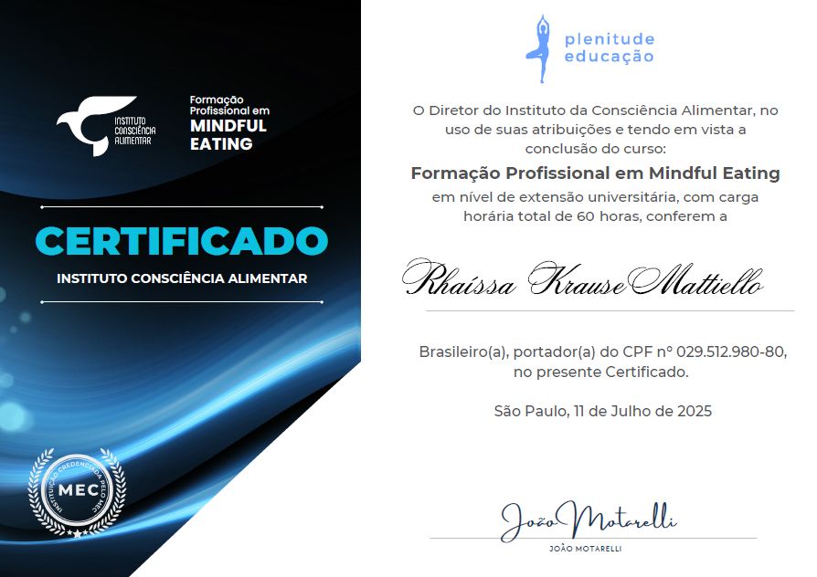 Raro encontrar uma profissional que consiga aliar tanto conhecimento técnico com um acolhimento que a gente sente que é de verdade. A Rhaíssa me ajudou muito a entender que a minha alimentação está ligada à minha história e às minhas ansiedades, e não apenas a números frios.