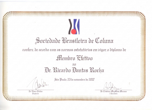 Membro da Sociedade Brasileira de Coluna desde 2017.