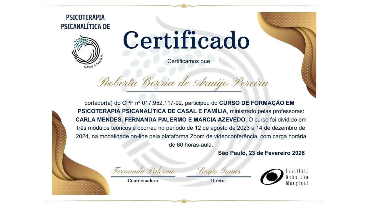 A minha vida clínica sempre foi acompanhada de muito estudo e dedicação. Exemplos disso foram as diversas formações: atendimento de casal e família, psicanálise e atendimento de adultos, psicanálise e atendimento de adolescentes.