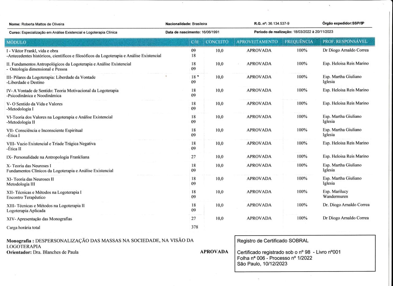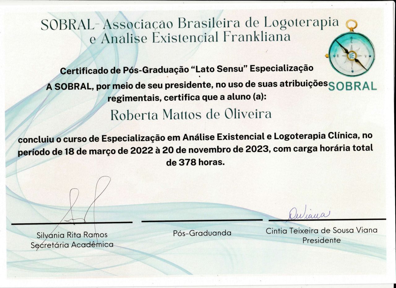 Sou graduada em Psicologia e pós-graduada em Logoterapia e Análise Existencial Frankliana.