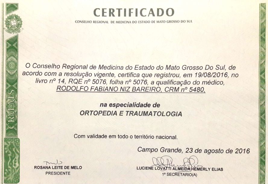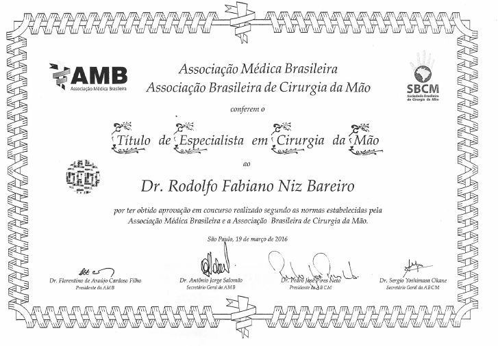 Quais são as principais especialidades de Rodolfo Fabiano Niz Bareiro?Rodolfo Fabiano Niz Bareiro é cirurgião da mão, ortopedista - traumatologista. Te mostramos alguns dos serviços oferecidos pelo especialista graças à sua trajetória e vasta experiência: Artrodese Carpo-Metacarpiana (Do Polegar Ou Em Outros Dedos, Artrodese Interfalangiana, Artroplastia Metacarpo Falangiana, Cirurgia De Centralizacao Do Punho, Cirurgia da sindrome compressiva em tunel osteofibroso do carpo, Drenagem Abscesso De Dedo Da Mao, Osteoplastia Para Alongamento De Osso Metacarpico Ou Falange, Osteotomia Para Correcao De Deformidade De Osso Metacarpico Ou Falange, Reparo ligamentar do carpo da radioulnar distal e da radiocarpiano, Primeira consulta cirurgia da mão.