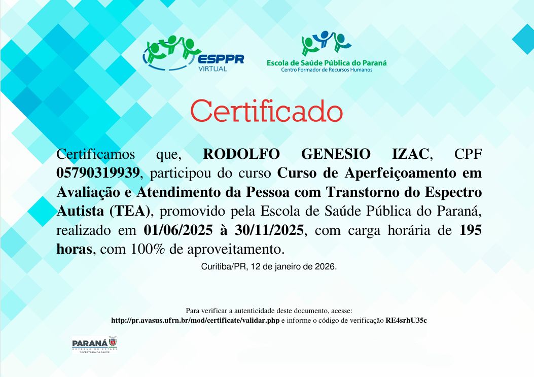 Tenho também pós-graduação em Terapia Cognitivo-Comportamental e em Transtornos do Espectro Autista.