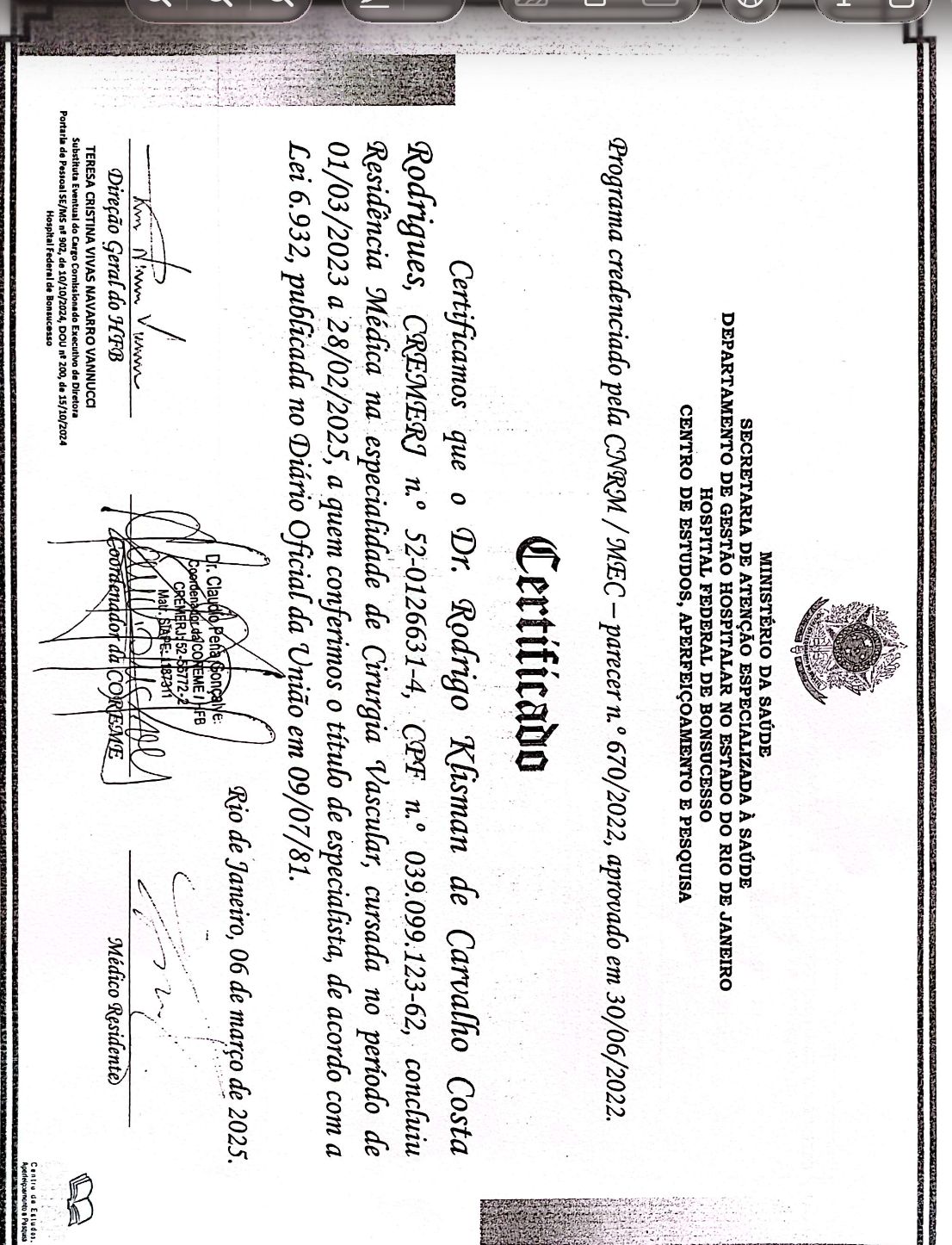 Número de registro: CRM RJ 1266314 - RQE Nº: 56531