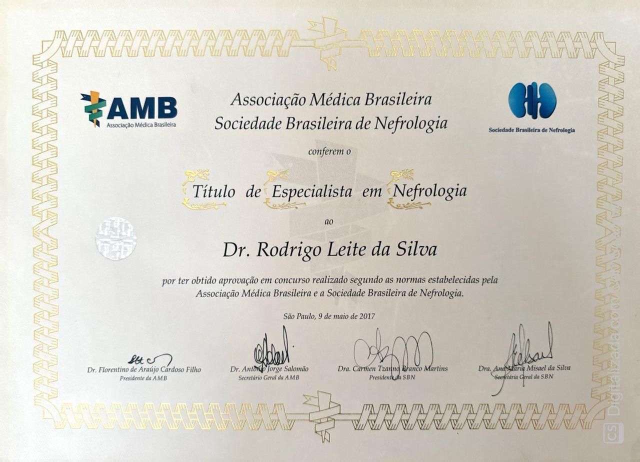 Quais são as principais especialidades de Rodrigo Leite da Silva?Rodrigo Leite da Silva é nefrologista, especialista em clínica médica. Te mostramos alguns dos serviços oferecidos pelo especialista graças à sua trajetória e vasta experiência: Primeira consulta Nefrologia, Encaixe Telemedicina, Investigação metabólica da formação de calculos renais, Retorno de consultas Nefrologia, Tratamento para Hipertensão, Consulta Nefrologia, Diálise Peritoneal e Hemodiálise, Consulta Nefrologista, Hemodiálise, Biopsia renal por punção.