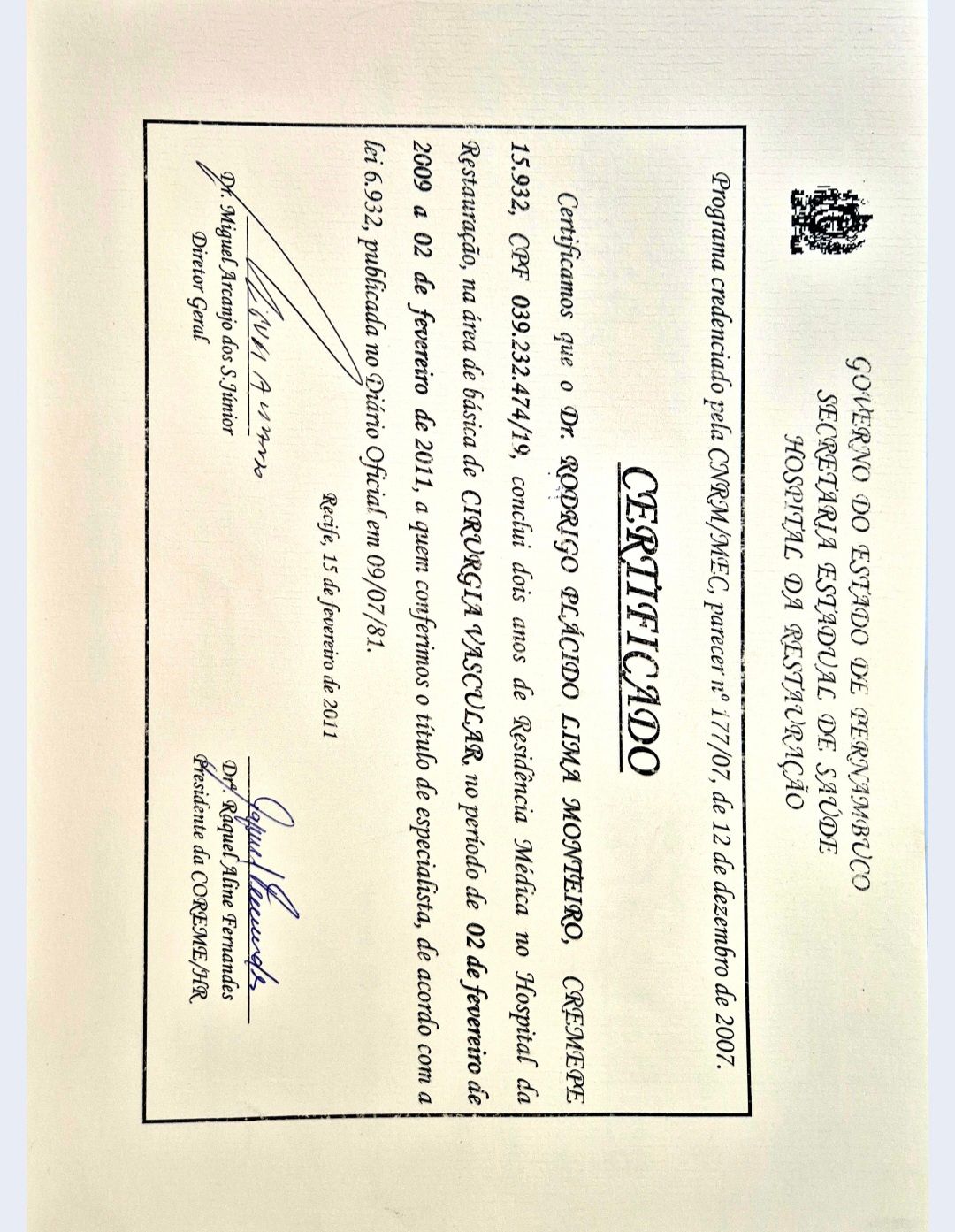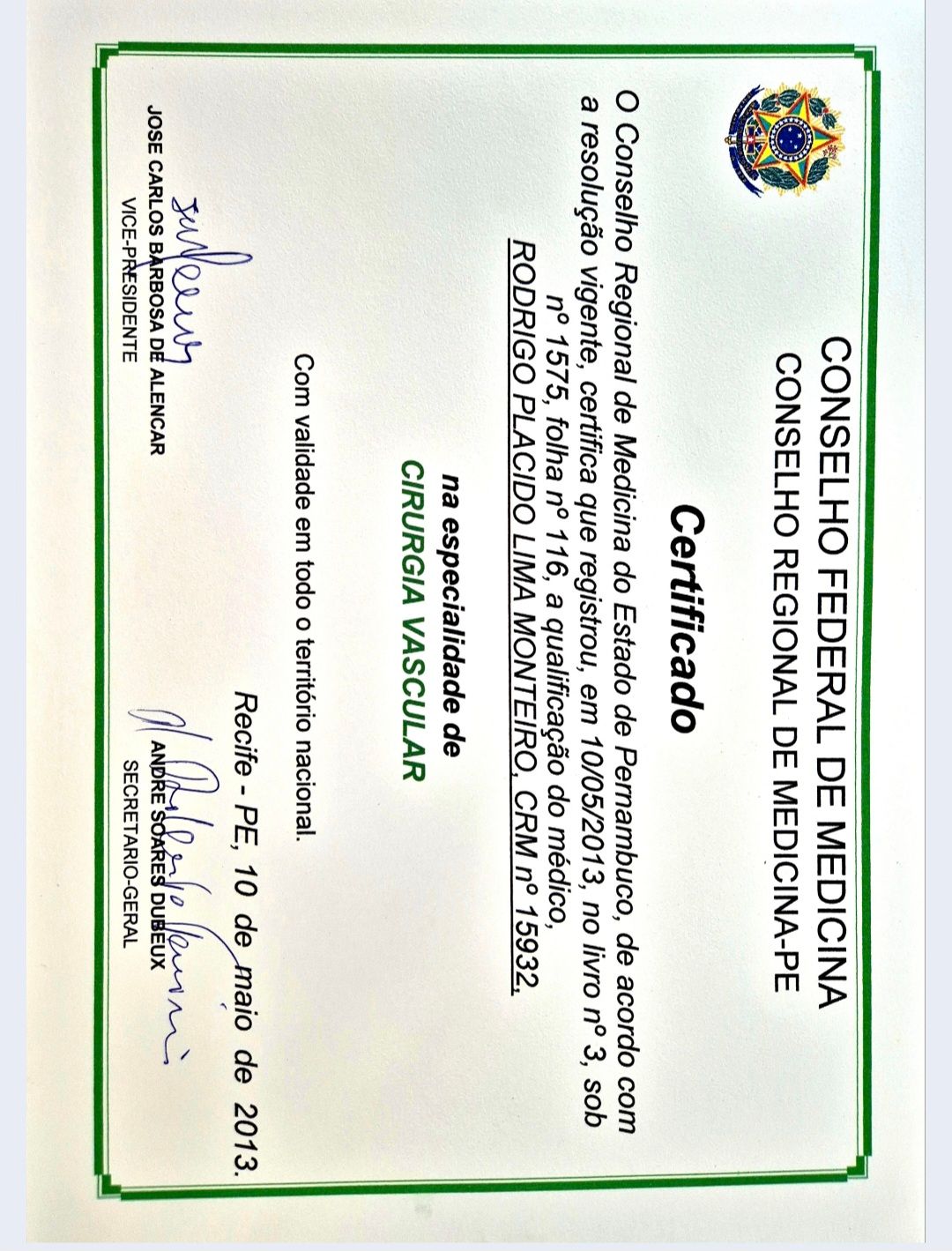 Número de registro: CRM: 15932-PE RQE Nº: 1575