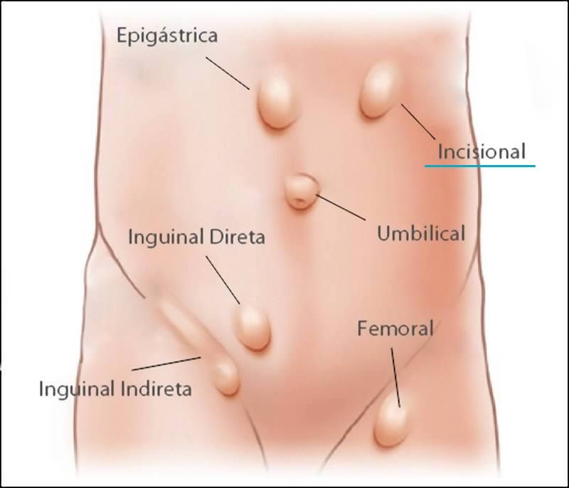 - Cirurgias abdominais: Cicatrizes podem enfraquecer a região.