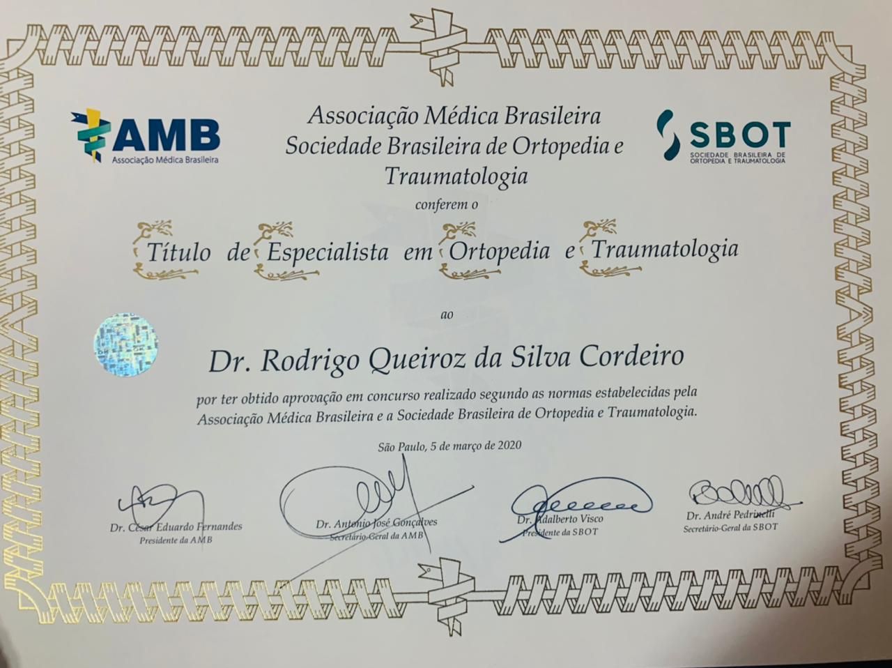 Quais são as principais especialidades de Rodrigo Queiroz Cordeiro?Rodrigo Queiroz Cordeiro é ortopedista - traumatologista. Te mostramos alguns dos serviços oferecidos pelo especialista graças à sua trajetória e vasta experiência: Primeira consulta ortopedia e traumatologia, Artroscopia , Consulta ortopedia e traumatologia, Consulta particular, Laudo Pericial, Infiltração de substâncias em cavidade sinovial (articulação), Retorno de consultas ortopedia e traumatologia, Tratamento da dor, Atendimento no consultório, Teleconsulta.