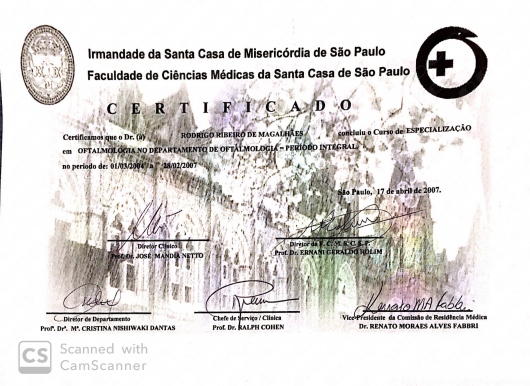 Quais são as principais especialidades de Rodrigo Ribeiro de Magalhães?Rodrigo Ribeiro de Magalhães é oftalmologista. Te mostramos alguns dos serviços oferecidos pelo especialista graças à sua trajetória e vasta experiência: Primeira consulta Oftalmologia, Adaptação de Lente de Contato, Cirurgia para correção de miopia, Exérese de calazio, Cirurgia para correção de hipermetropia, Facectomia Sem Implante De Lente Intraocular, Cirurgia a laser ocular, Cirurgia de catarata, Cirurgia refrativa, Facectomia Para Implante De Lente Intraocular.