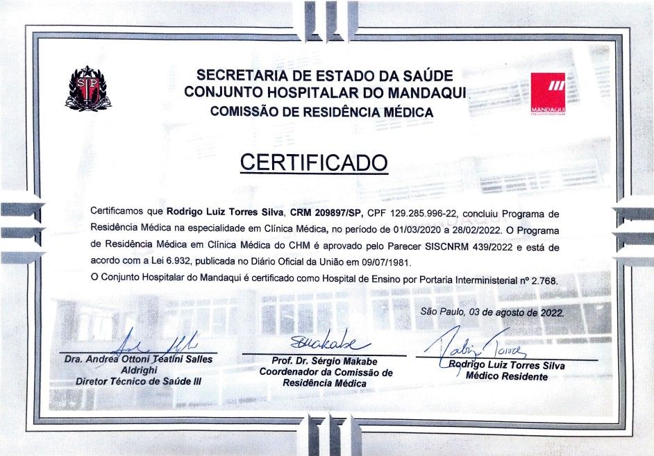 Iniciei minha formação médica em Santos, posteriormente realizei residência em Clínica Médica no Hospital do Mandaqui, em São Paulo, e em Nefrologia pelo IAMSPE, também em São Paulo, cidade onde atualmente atuo tanto em ambiente hospitalar quanto em consultório particular.