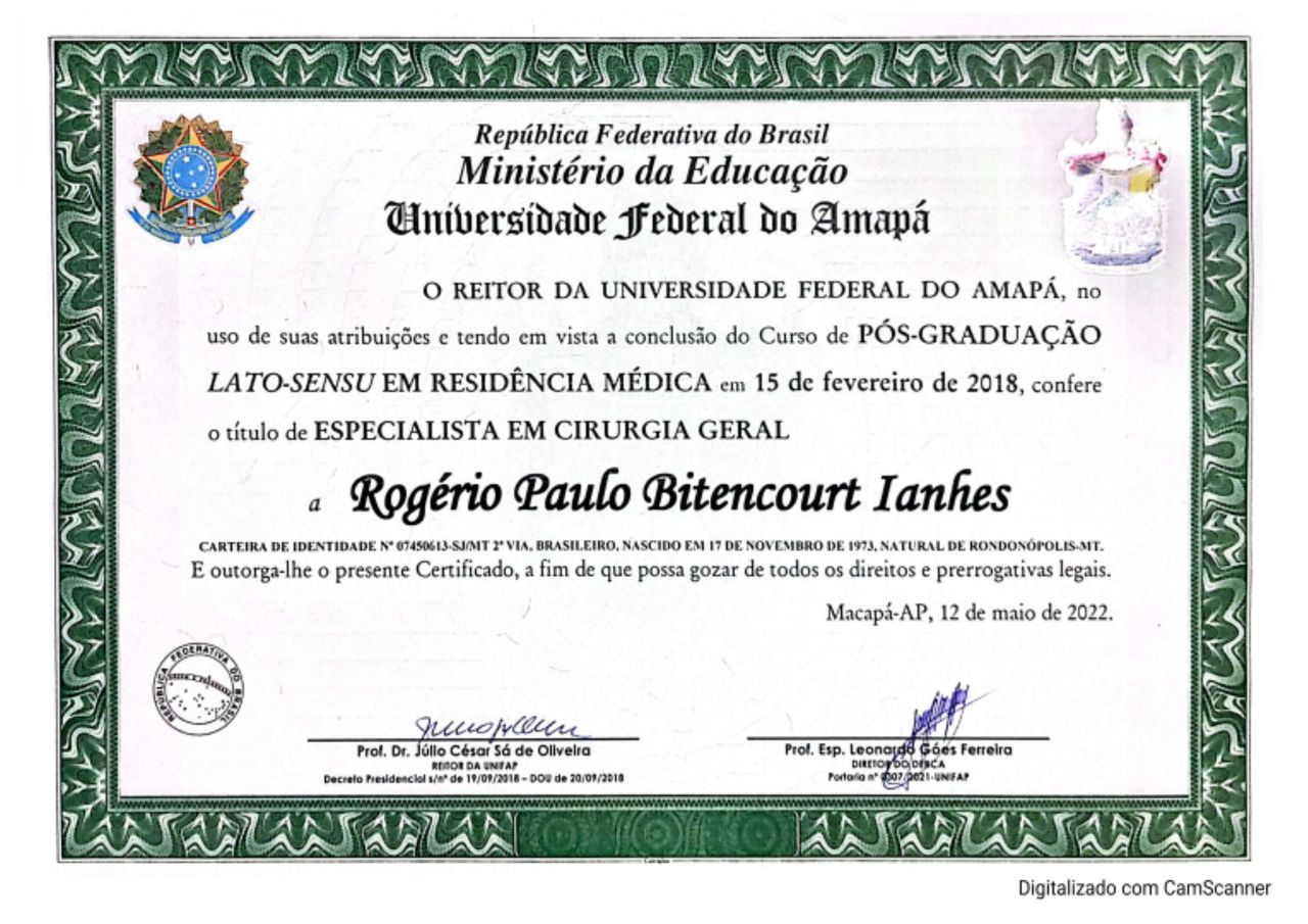 Sou médico especialista na área de Cirurgia Geral, Cirurgia Oncológica e Mastologia, bem como, possui pós-graduação em Medicina do Trabalho e Medicina Intensiva.