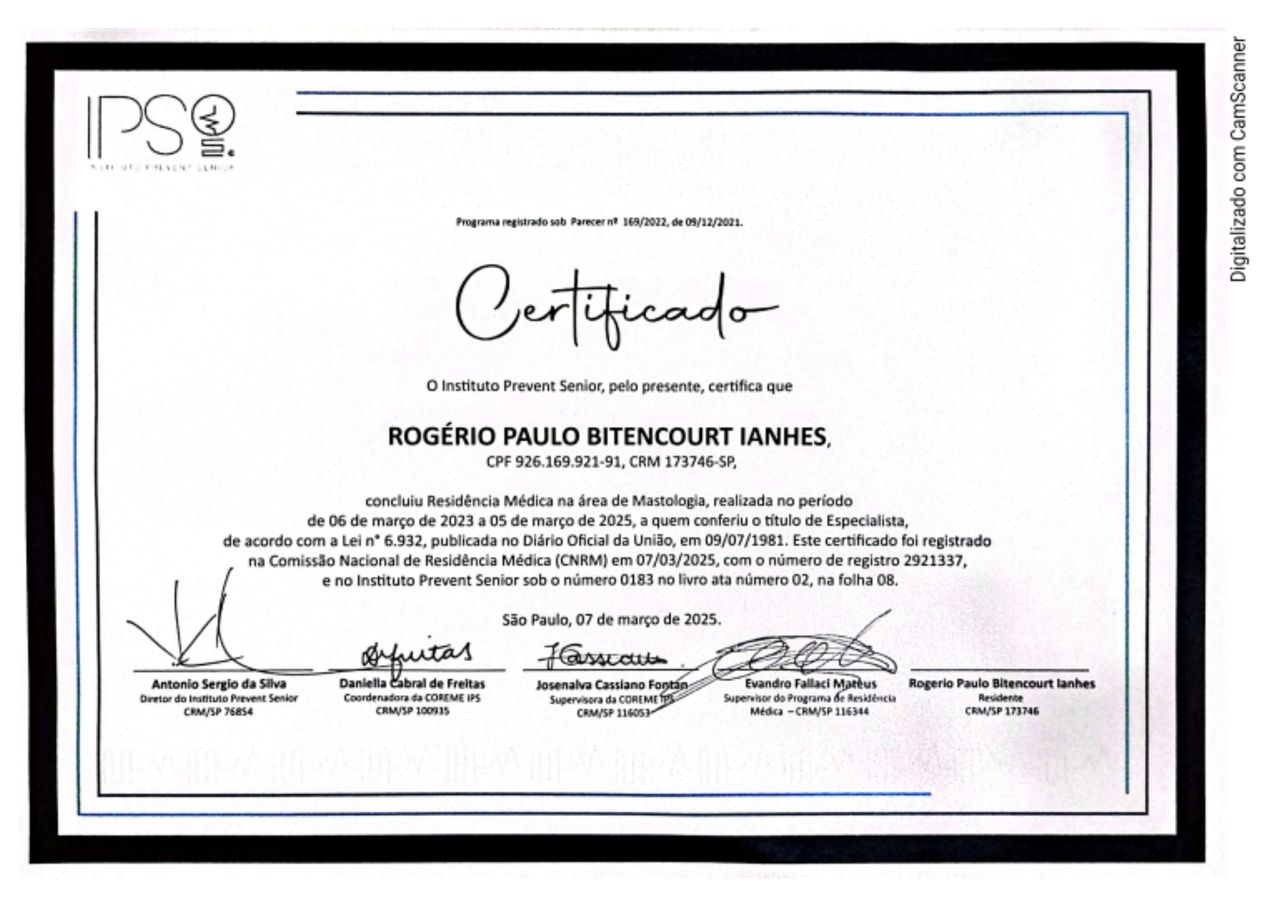 Quais são as principais especialidades de Rogerio Paulo Bitencourt Ianhes?Rogerio Paulo Bitencourt Ianhes é mastologista. Te mostramos alguns dos serviços oferecidos pelo especialista graças à sua trajetória e vasta experiência: Primeira consulta clínica médica, Consulta de Mastologia.