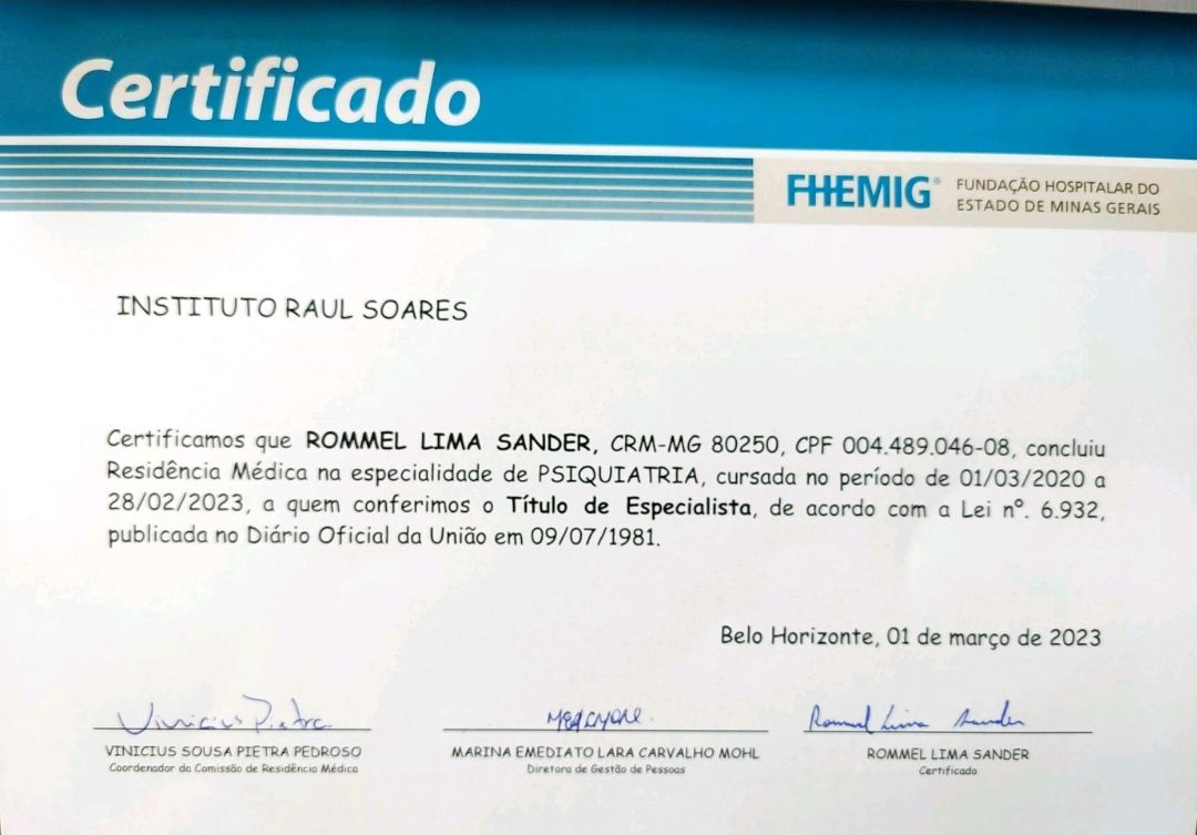 Preceptor da Residência Médica em Psiquiatria do IPSEMG