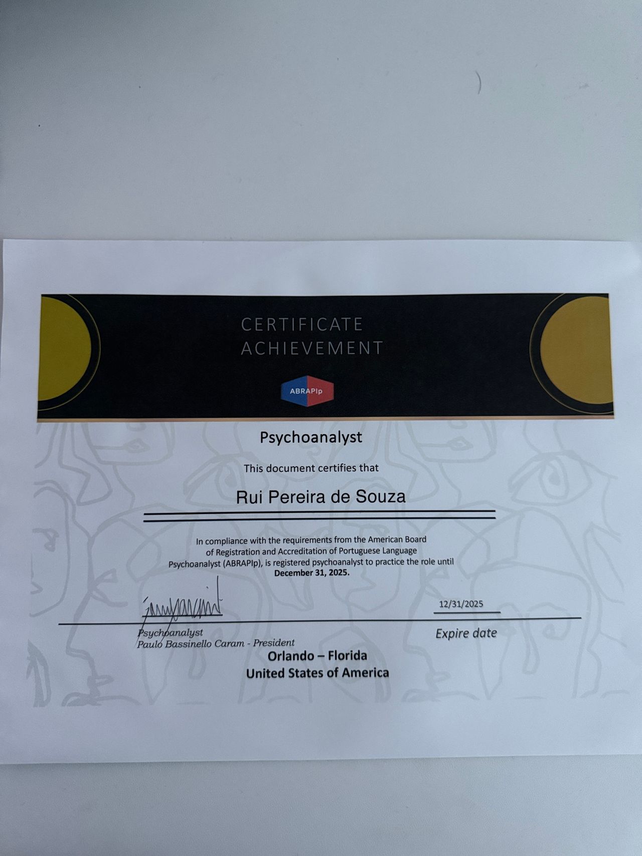 Número de registro: Certificados apresentados