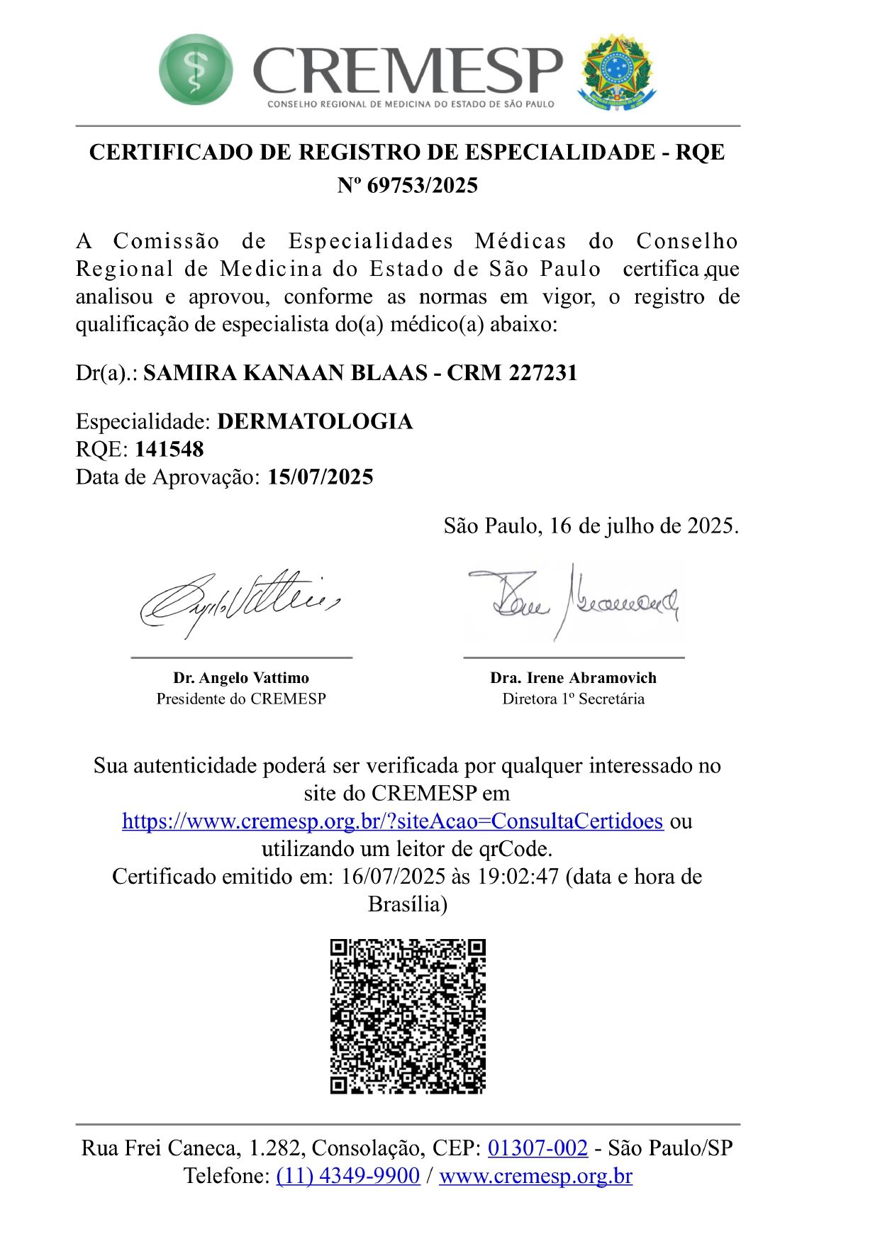 • Consultório de Dermatologia Dra Samira Blaas • Primeira consulta Dermatologia •