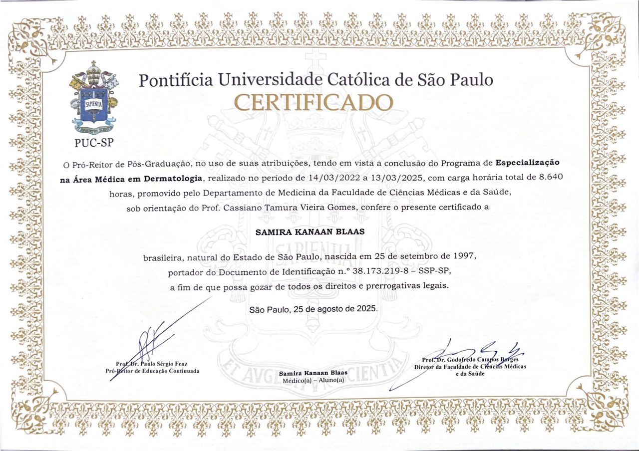 Fiz todo meu tratamento de acne com a doutora Samira Blaas e só tenho elogios! Desde o início, ela foi extremamente atenciosa, cuidadosa e sempre mto comprometida com tudo que faz. Da para perceber a excelência no trabalho dela e, principalmente, o amor e dedicação pela profissão. Me senti segura e muito bem acompanhada em todas as etapas do tratamento. Além disso, o consultório é simplesmente lindo, acolhedor, e ela é extremamente receptiva. Super recomendo.