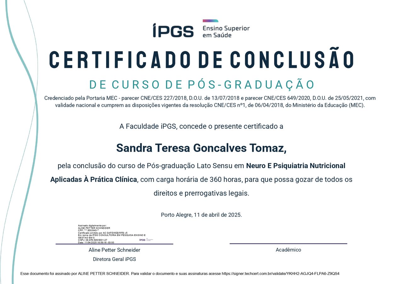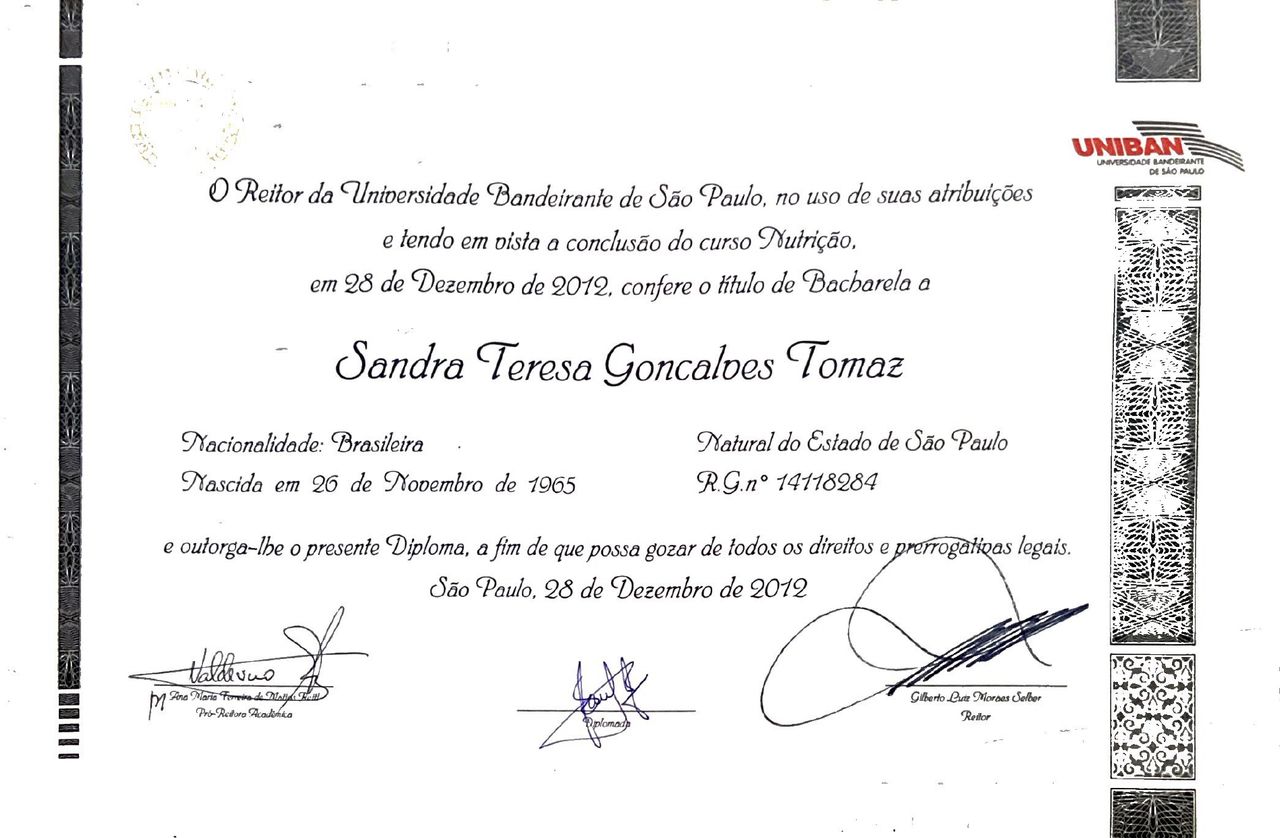 Parabéns, Sandra!• Sandra Teresa Tomaz • Consulta nutricionista •