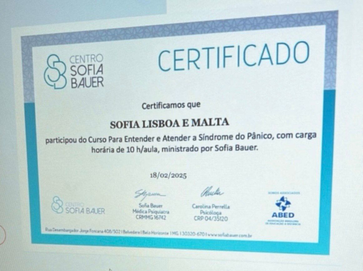Sofia é uma profissional sensacional, chegou na minha vida em um momento muito difícil, mas está me ajudando muito em todo o processo. Soube escutar de forma empática e acolher a minha dor.