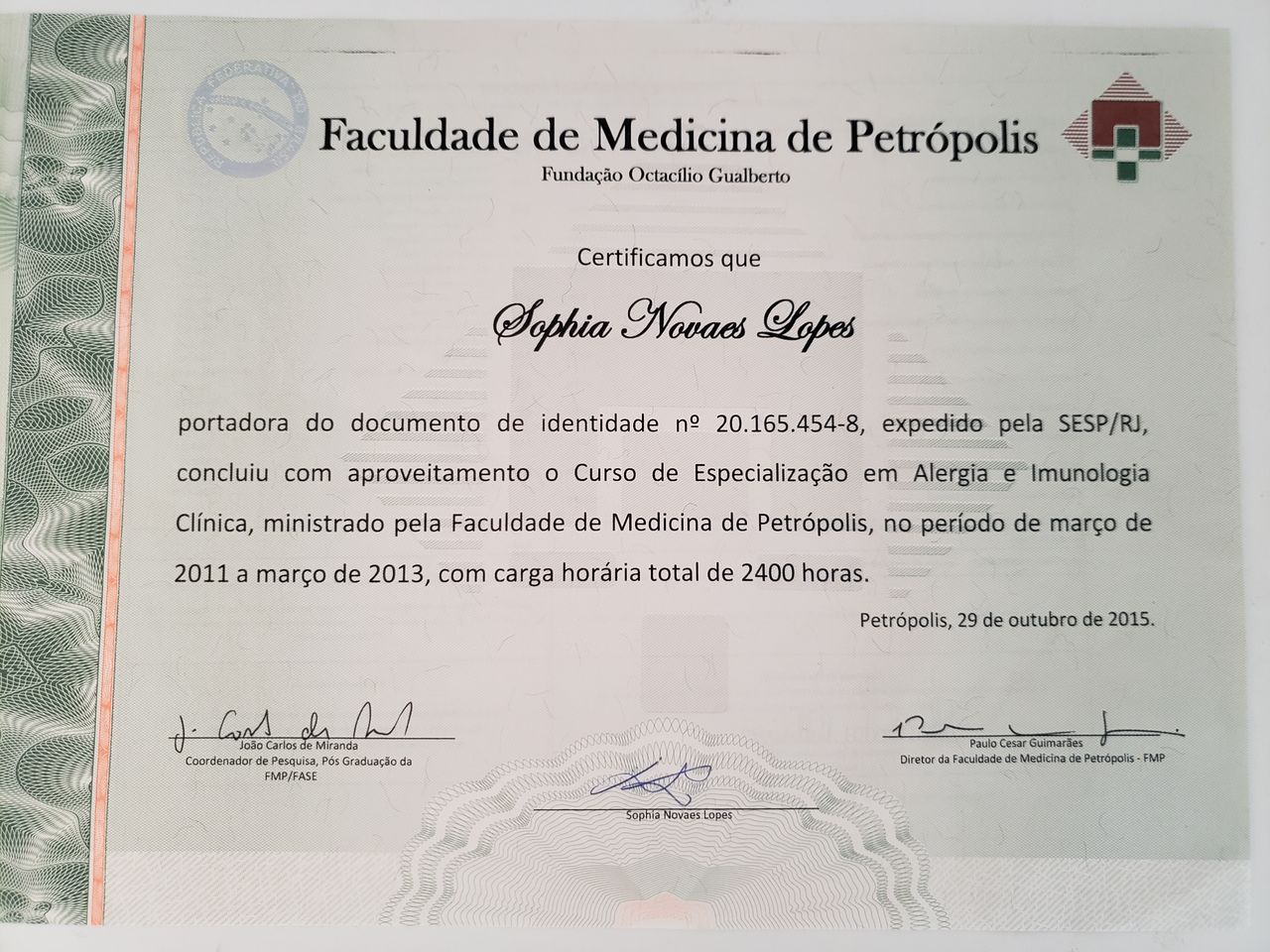 Médica extremamente competente, escuta as demandas do paciente e procura sempre o melhor tratamento possível. Acompanha a evolução do paciente a cada consulta . Uma abordagem prática e objetiva que facilita o entendimento e o tratamento consequentemente . Está sempre atualizada das novidades referentes a sua especialidade. Já faço acompanhamento com a Dra Sophia há um bom tempo e desde então minha vida foi mais tranquila, sem crises alérgicas. Recomendo demais e não abro mão das suas consultas.