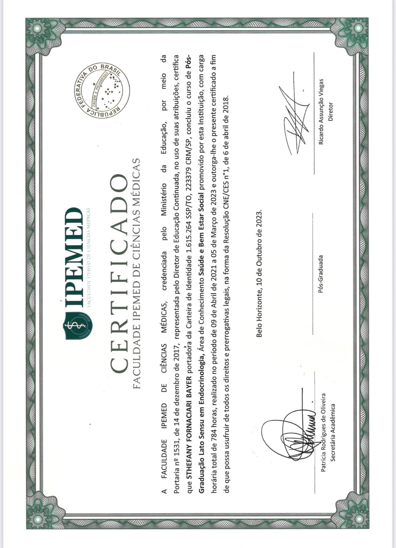 Sou muito grata à Dra. Sthefany Fornaciari pelo cuidado, atenção e dedicação. Endócrina excelente, que fez toda a diferença no meu tratamento.