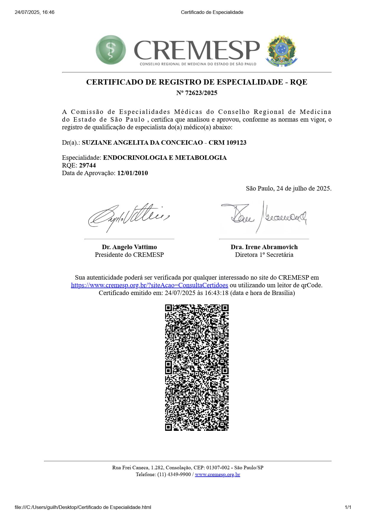 Número de registro: CRM SP 109123 RQE Nº: 29744