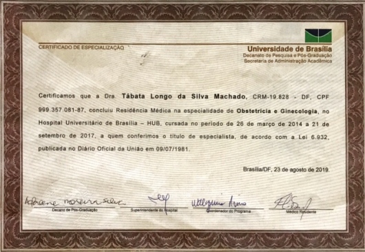 Tenho formação médica na Universidade de Brasília e residência médica em Ginecologia e Obstetrícia no Hospital Universitário de Brasília. Além disso, tenho especialização em medicina fetal pela Nexus/ Universidade de Barcelona o que me permite que oferer um cuidado ainda mais completo e preciso para as minhas pacientes.
