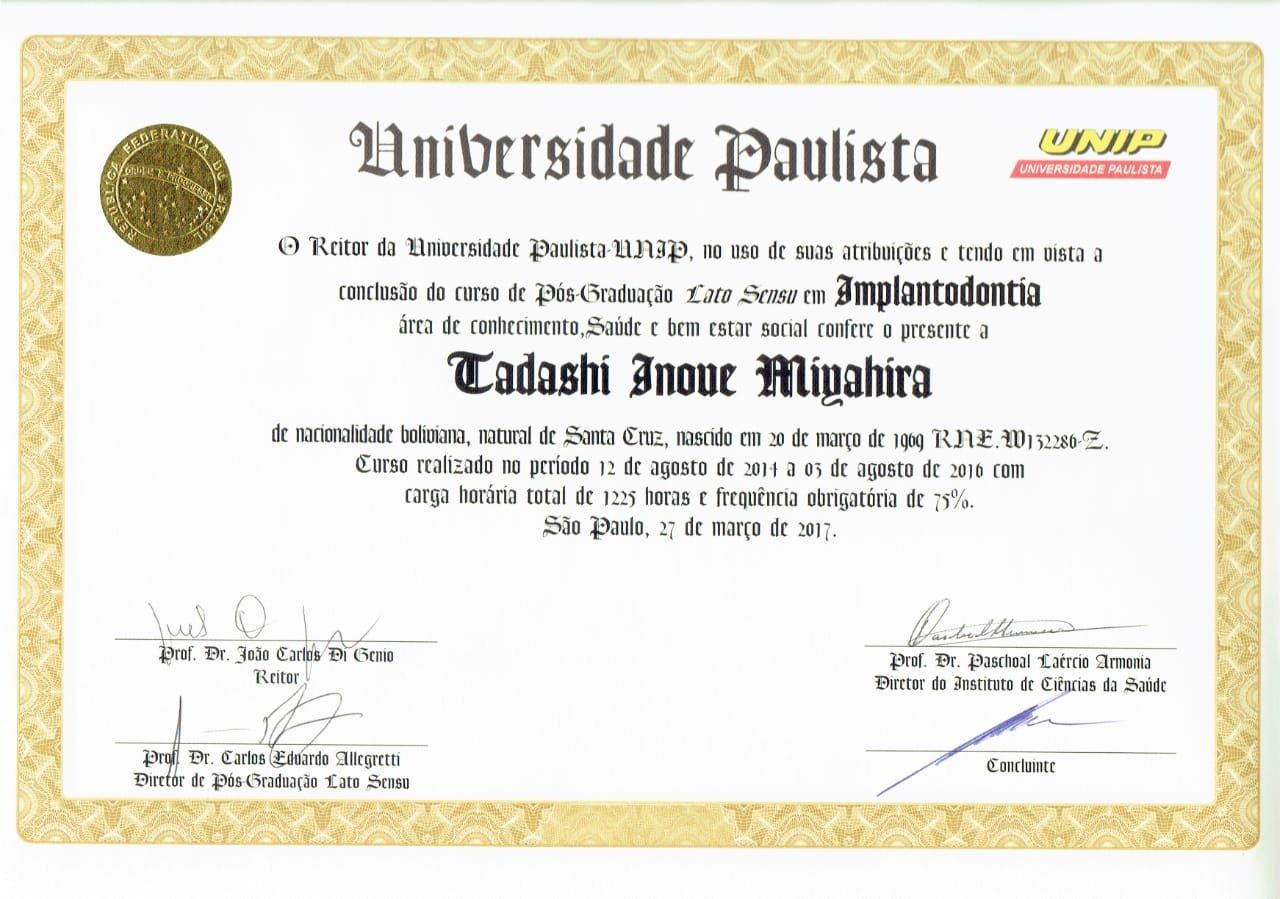 O doutor Tadashi é excelente, não mede esforços para tirar todas as minhas dúvidas muito simpático e atencioso passa muita segurança durante todo tratamento, só aumentou meu respeito por ele e pelo seu trabalho.