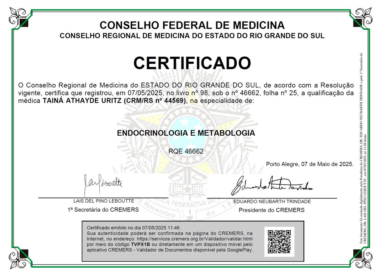 Concluí residência médica em Clínica Médica e em Endocrinologia no Hospital de Clínicas de Porto Alegre, onde aprofundei minha formação no cuidado integral ao paciente.