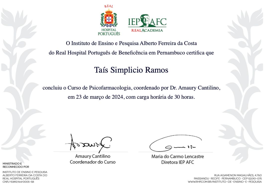 Sou médica residente do último ano em Psiquiatria pela UFPE.