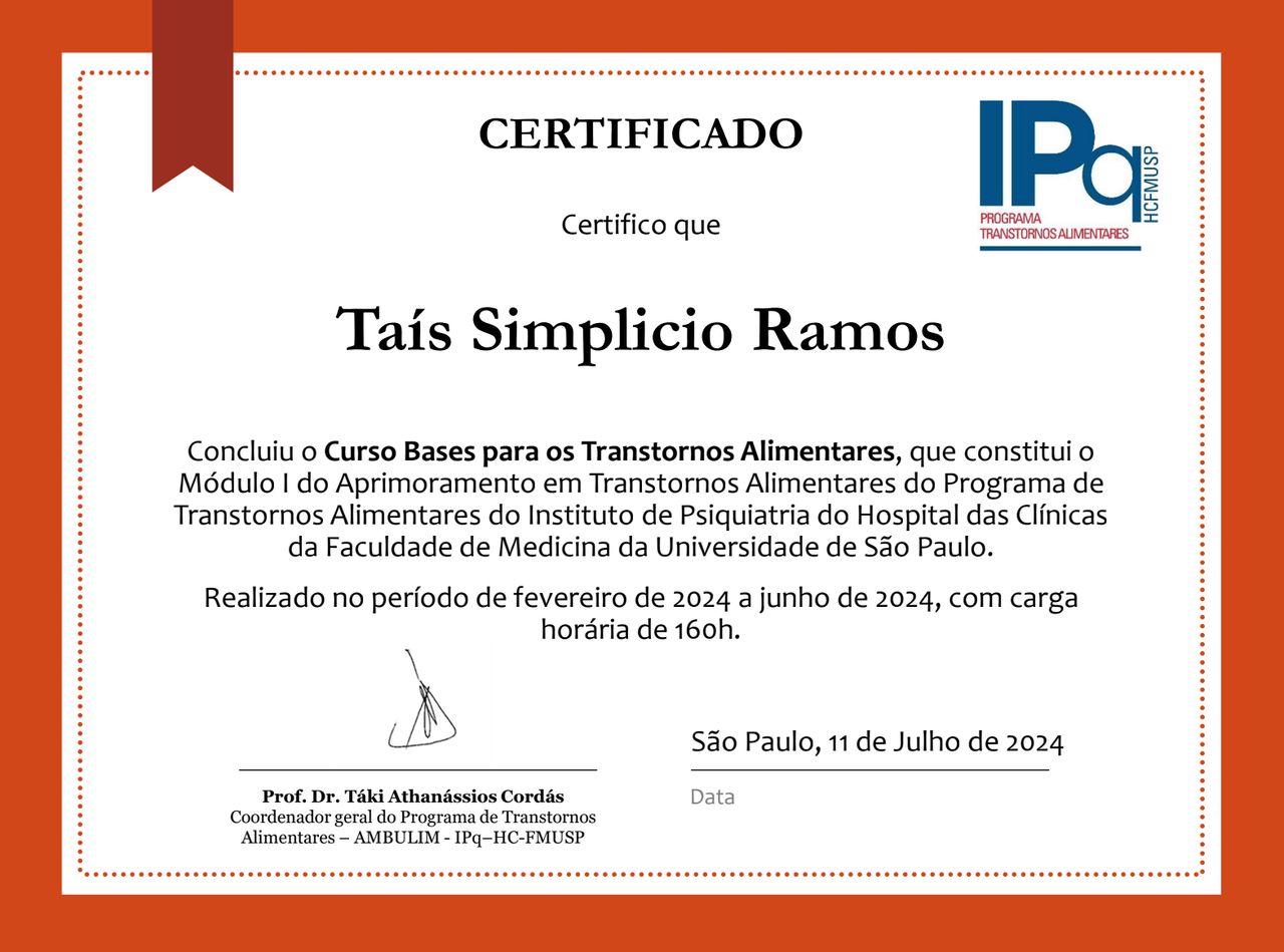 Quais são as principais especialidades de Taís Simplicio?Taís Simplicio é psiquiatra. Te mostramos alguns dos serviços oferecidos pelo especialista graças à sua trajetória e vasta experiência: Teleconsulta, Primeira consulta Psiquiatria, Tratamento de transtorno afetivo bipolar, Tratamento da depressão, Tratamento de transtorno de personalidade borderline, Tratamento de transtornos alimentares, Tratamento de transtornos psiquiátricos na gravidez, Tratamento do transtorno por uso de substâncias (TUS), Transtorno de déficit de atenção e hiperatividade - TDAH, Tratamento Adicção.