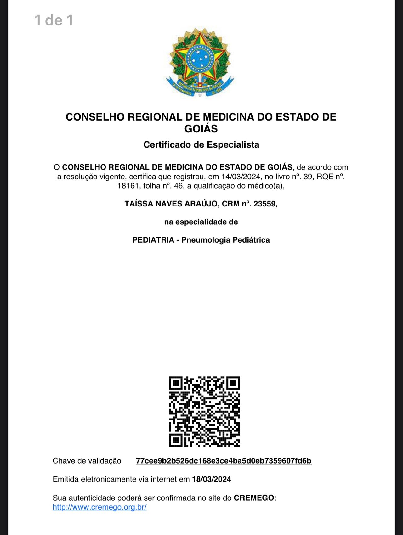 A doutora foi super atenciosa durante a teleconsulta, explicou com bastante clareza. Não tenho dúvidas a quem procurar quando meu filho tiver crises respiratórias