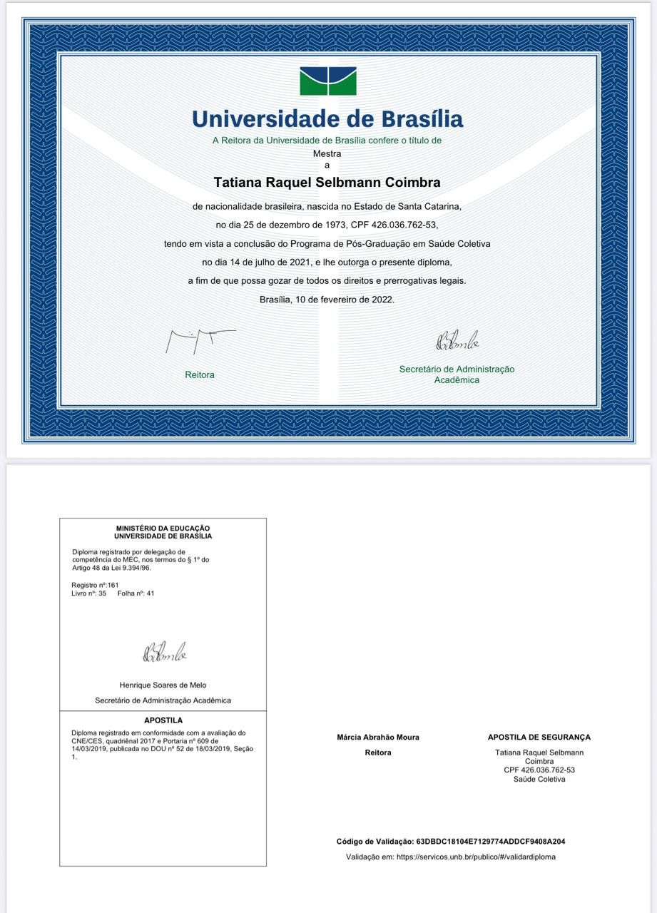 Mestre em Saúde Coletiva, pela Universidade de Brasília.