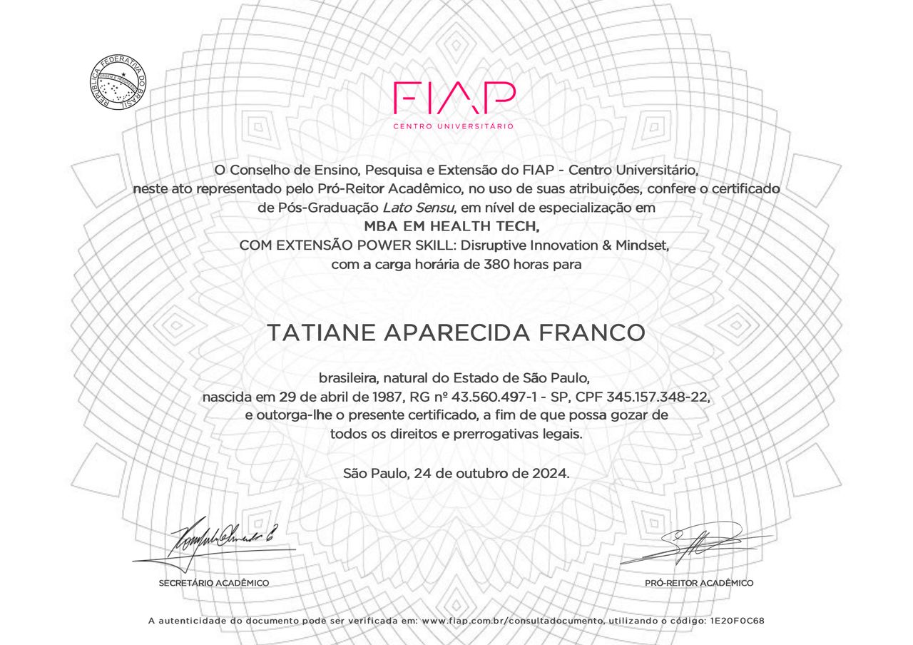 Com imensa satisfação, venho recomendar a consulta com a Dra. Tatiane cuja expertise e dedicação à saúde e bem-estar de seus pacientes são amplamente reconhecidas. A Dra Tatiane possui uma notável capacidade de escuta e um profundo entendimento das necessidades de cada indivíduo, o que a torna uma profissional de destaque em sua área.