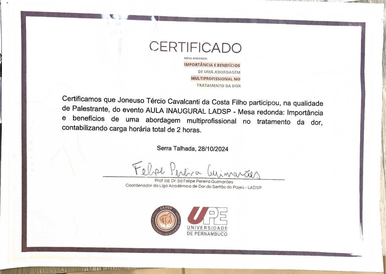 Dr.Tércio calvacanti e um excelente profissional ,muito humano e competente. Recomendo o seu trabalho a todos