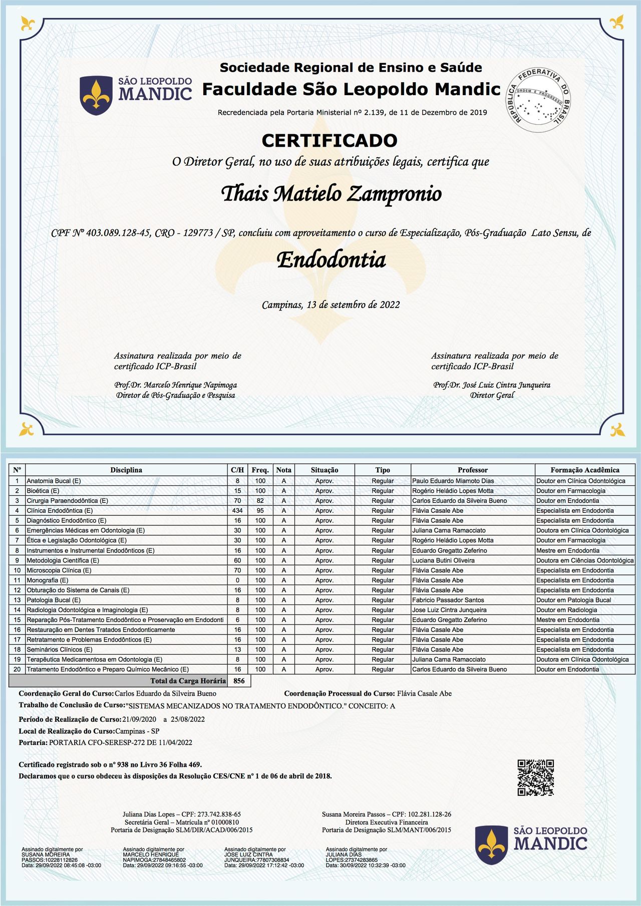 Graduada pela Faculdade de Odontologia de Araraquara – FOAR/UNESP e pós-graduada em Endodontia pela Faculdade São Leopoldo Mandic, a Dra. Thaís desenvolve seu trabalho com foco no tratamento especializado de canal.