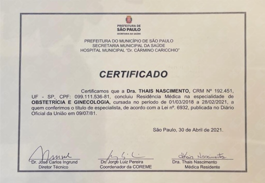 Quais são as principais especialidades de Thais Nascimento?Thais Nascimento é ginecologista. Te mostramos alguns dos serviços oferecidos pelo especialista graças à sua trajetória e vasta experiência: Primeira consulta ginecologia e obstetrícia, Consulta de menopausa, Consulta com colocação de DIU, Implante hormonal contraceptivo, Orientação de métodos contraceptivos, Consulta ginecologia, Primeira consulta em Ginecologia, Laser ginecológico, Ninfoplastia, Teleconsulta.