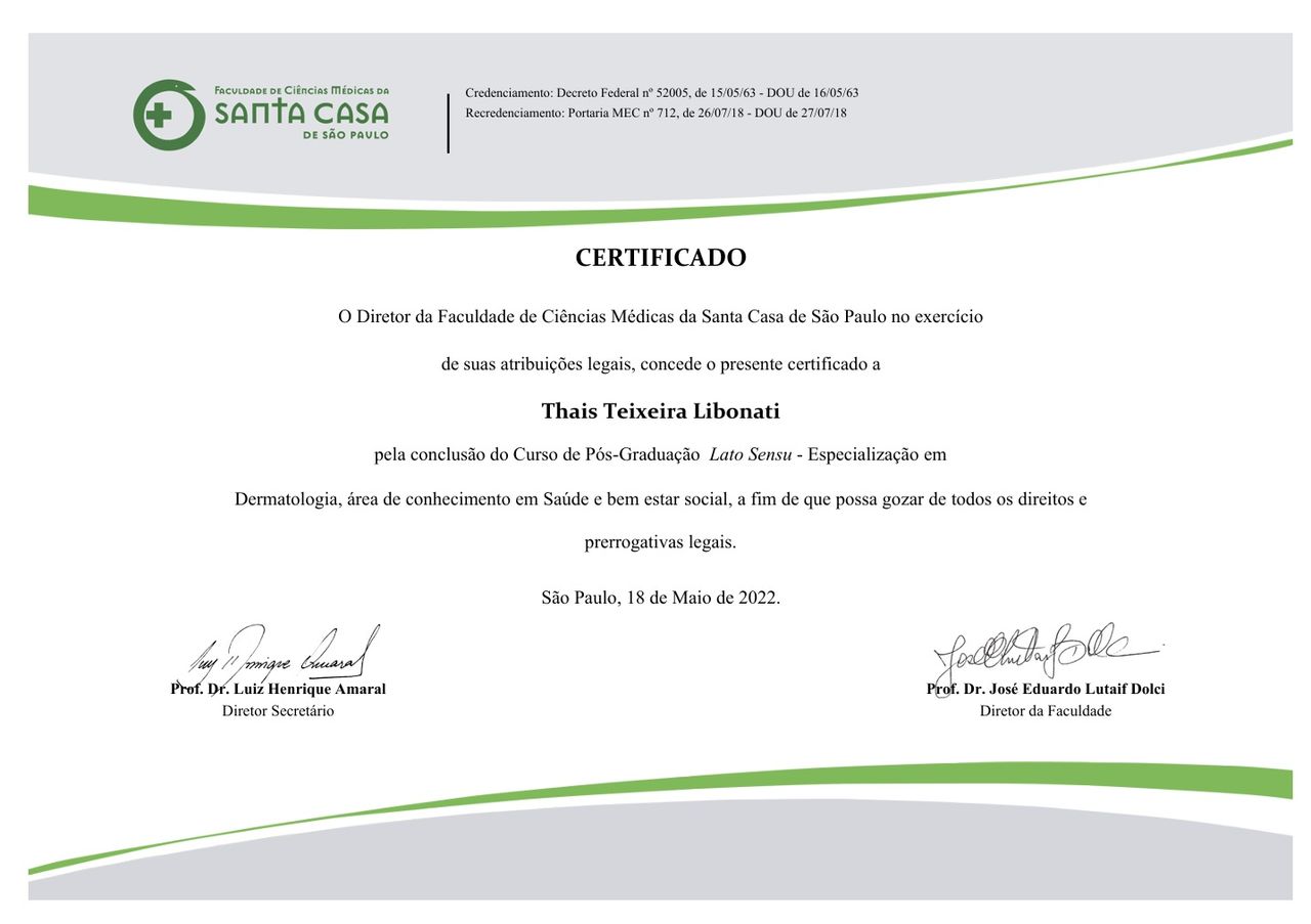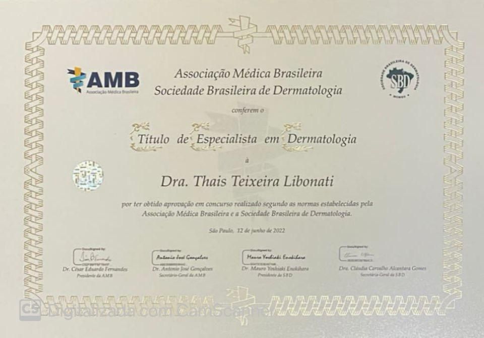 Quais são as principais especialidades de Thais Teixeira Libonati?Thais Teixeira Libonati é dermatologista. Te mostramos alguns dos serviços oferecidos pelo especialista graças à sua trajetória e vasta experiência: Primeira consulta Dermatologia, Ultrassom microfocado, Preenchimento com ácido hialurônico - labial, mentual, mandibular, olheiras, malar, zigomático, têmporas, sulco nasogeniano, Consulta Dermatologia, Biópsias, Botox, Cirurgia dermatológica, Fotona, Peeling, Tratamento a laser de picossegundos - picoway laser.