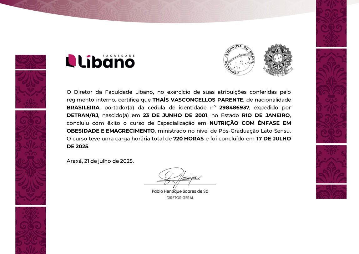 Se você busca um acompanhamento que respeita sua rotina e vá além de uma simples dieta, será um prazer te acompanhar nesse processo.