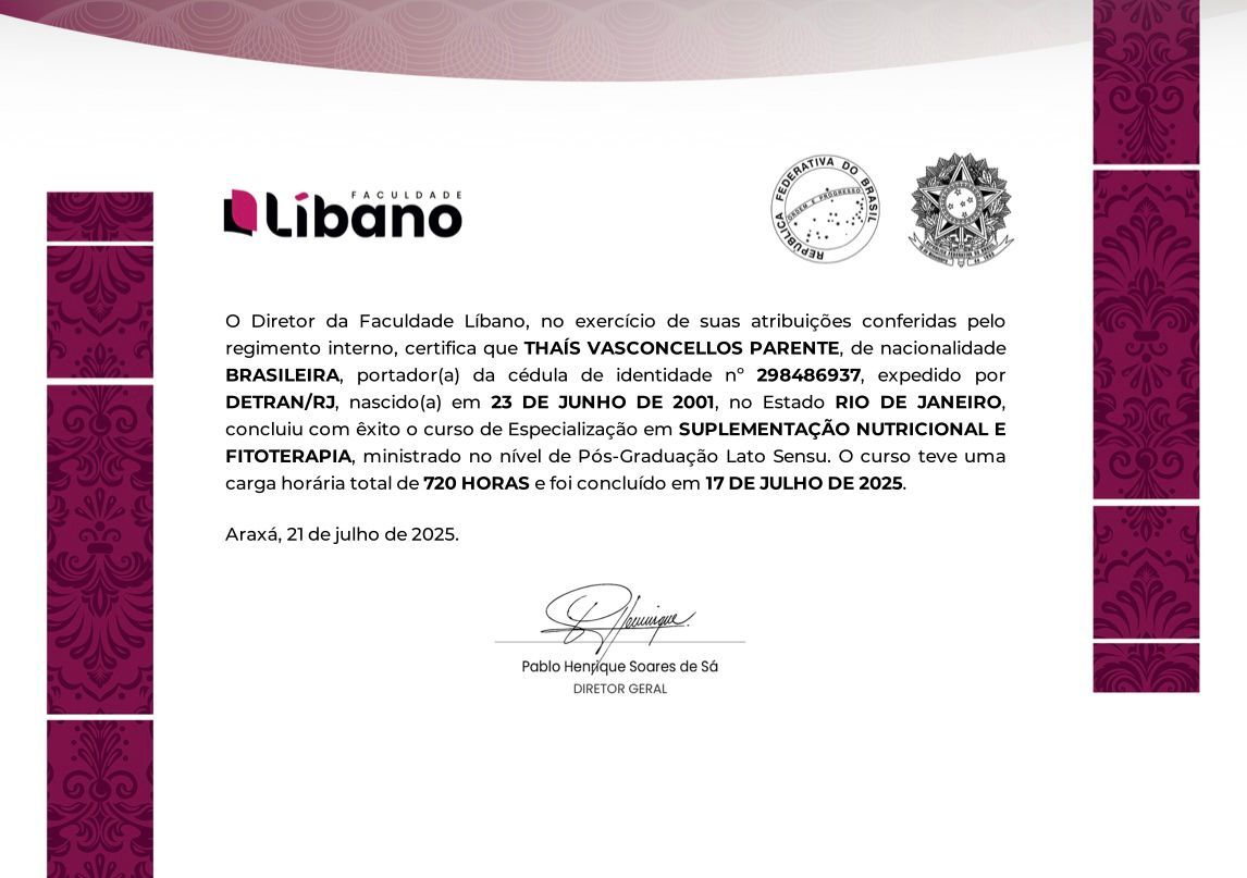 Sou nutricionista especialista em emagrecimento, com atuação em fitoterapia e nutrição esportiva, e ajudo mulheres e homens a conquistarem resultados reais através de uma alimentação que funciona na vida real.