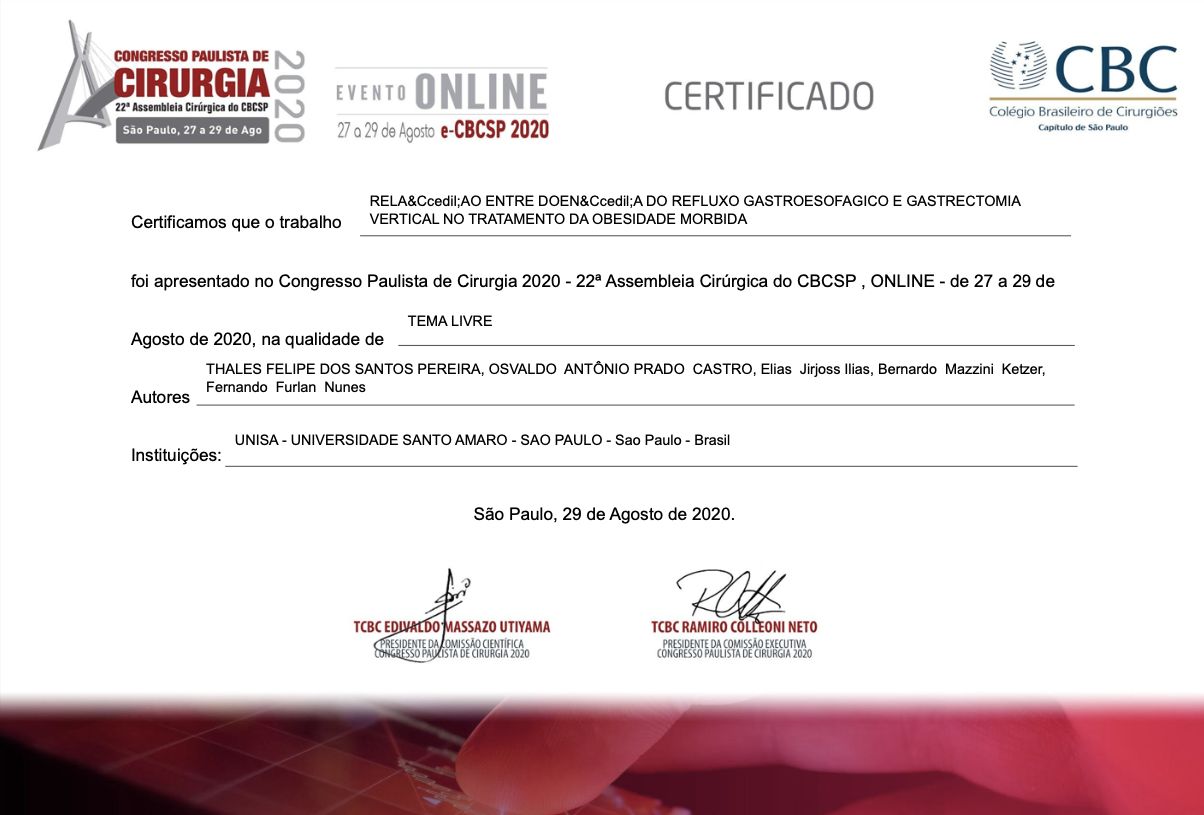 Movido pela busca contínua por conhecimento e pelo desejo de contribuir para a ciência médica, o Dr. Thales Felipe dos Santos Pereira obteve o título de Mestre em Ciências da Saúde pela mesma instituição em que realizou sua residência, a Universidade de Santo Amaro (UNISA/HGG). Sua dedicação à educação e ao ensino se manifesta em sua atuação como médico preceptor e professor da UNISA, onde compartilha seu conhecimento e experiência com as novas gerações de médicos.