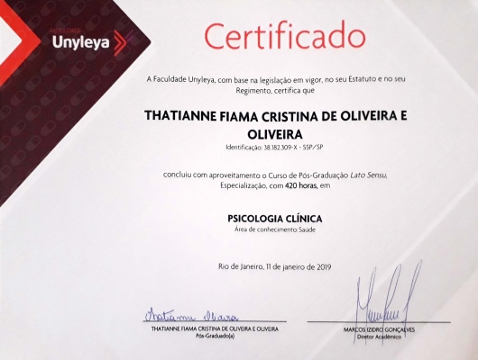 - Pós-graduação em Psicologia Clínica pela Faculdade UNYLEYA.