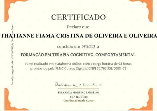 - Curso de Terapia Cognitiva Comportamental para profissionais da Psicóloga Fernanda Landeiro