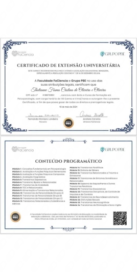 - Psicopatologia, psicofarmacologia e suicídio no contexto clínico, todos ministrados pelo grupo FLNC, da psicóloga Fernanda Landeiro (referência na psicologia brasileira).